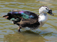 Perching Ducks (Cairininae or Cairinini) include the Blue Duck, Brazilian Duck, Comb Duck, Hartlaub's Duck, Australian Wood Duck, Mandarin Duck, Muscovy Duck, Pink-eared Duck, Pygmy Goose (African, Cotton, and Green), Ringed Teal, Salvadori's Teal, Torrent Duck, White-winged Duck, and American Wood Duck.
