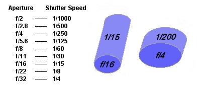 The 'Exposure' is how much light falls on to the digital sensor. This is determined by the 'Shutter Speed' - how long the shutter stays open, and the 'Aperture' - which is a multi-bladed iris diaphragm in the lens which can be opened up or closed down to restrict the amount of light reaching the digital sensor. The 'Shutter Speed' and 'Aperture' together determine the exposure so it is possible to have a fast shutter speed combined with a wide aperture or a slow shutter speed combined with a small aperture to give the same exposure.