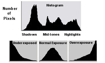 It is important that the histogram should not be clipped at the left or the right of the graph otherwise you will have lost some image information and the photo will be underexposed or overexposed.