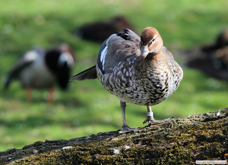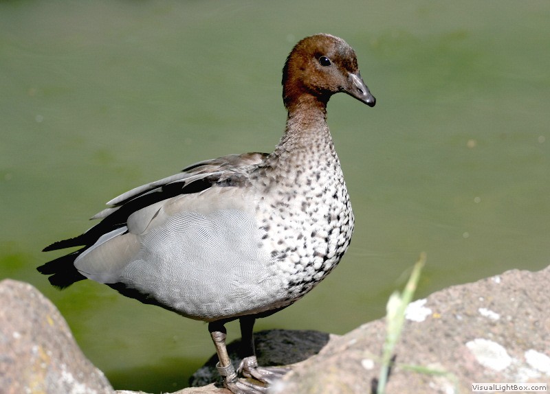 Notes: - The Australian Wood Duck resembles a small goose and is also called a Maned Duck or Maned Goose. It is endemic to Australasia and nests in tree hollows near to water. This duck prefers to graze on grassland rather than take to the water.