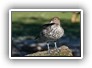 Female - The female is paler with a white stripe above and below the eye, mottled breast and flanks, and white lower belly and white undertail.