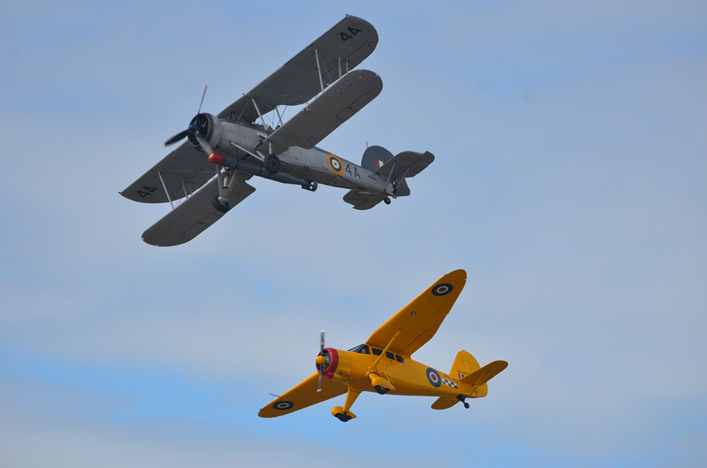 W5856, Fairey Swordfish I and 42-46703/N69745, Stinson AT-19 Reliant I, Blackpool Airshow 2023.