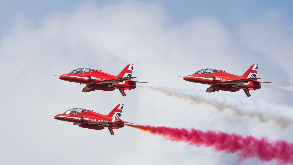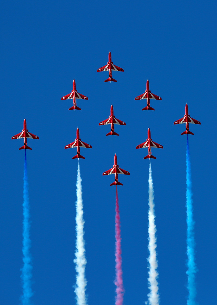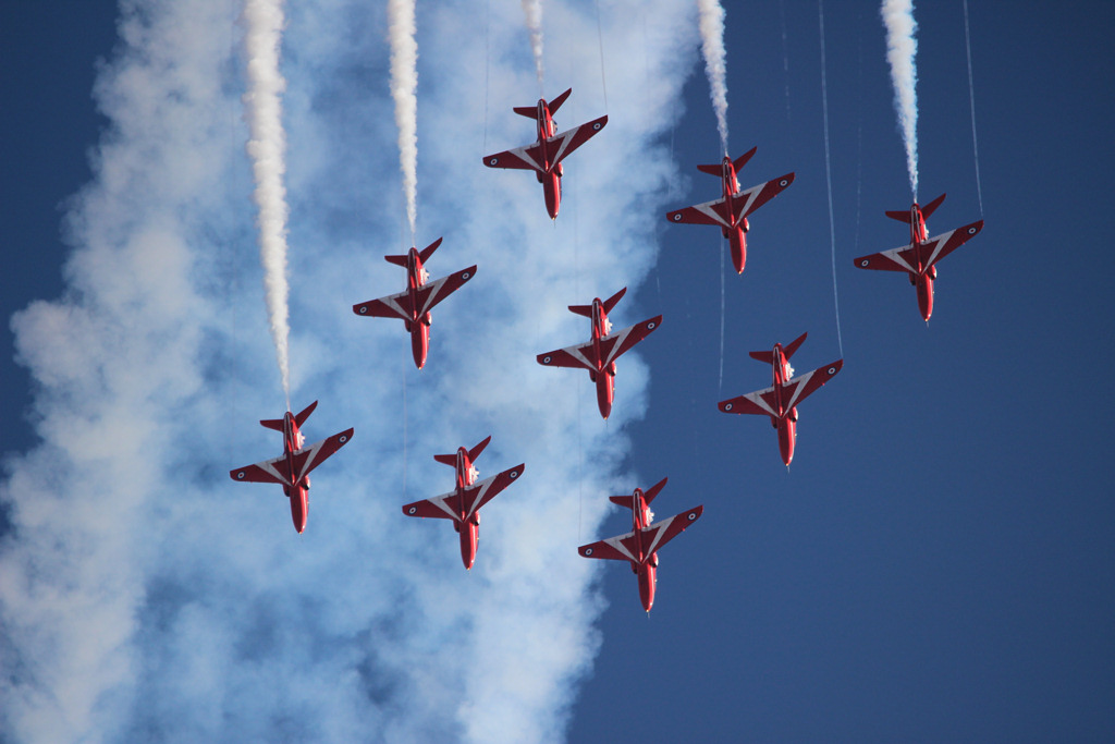 Red Arrows performing the "Tornado" manoeuvre at Biggin Hill in 2017. Nikon D5300 with Nikkor 70-300mm lens.