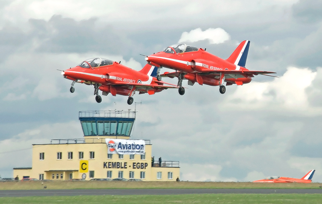 Reds taking off from their former home Kemble (Cotswold Airport), during the Kemble Airshow 2011. Nikon D90 camera and Sigma 18-200mm lens.