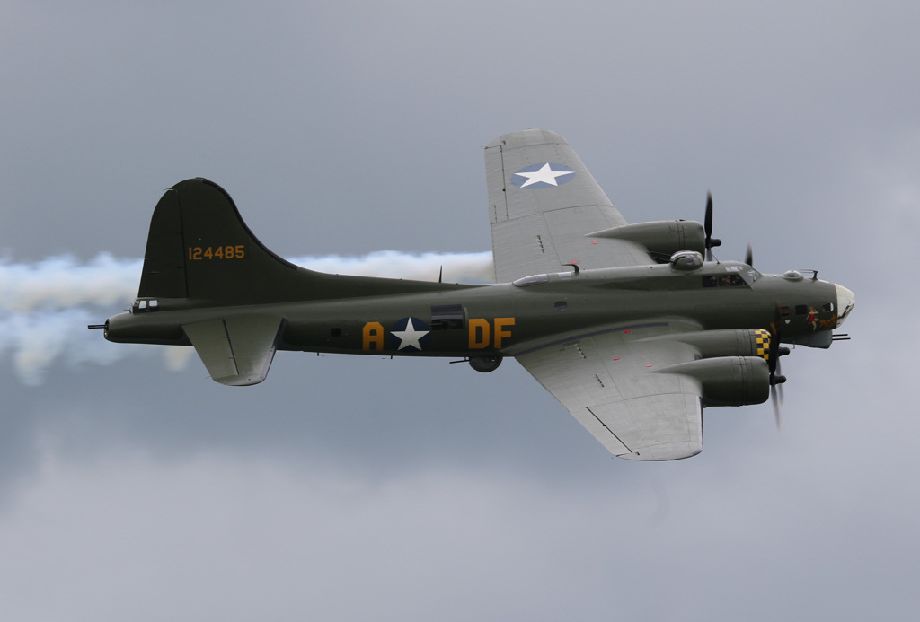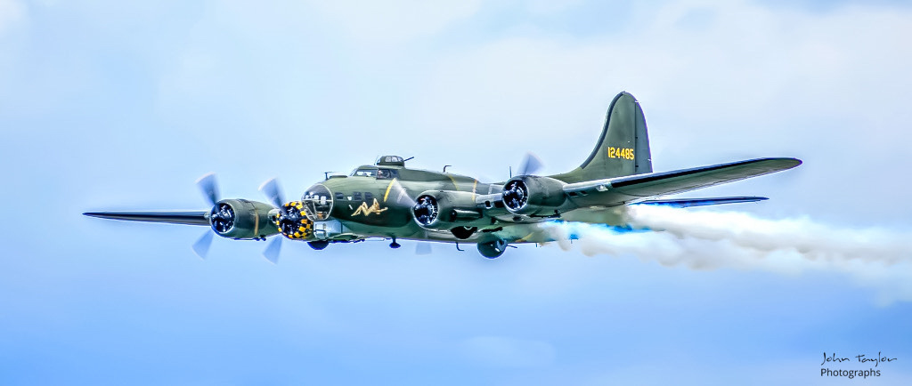 B-17 Sally B trailing smoke as a memorial to those aircrew who paid the ultimate sacrifice. Taken at Headcorn airshow, 2021. Canon 7d mkii, 100-400mm L series lens.