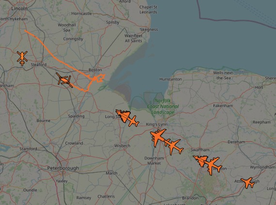 The rehearsals will start in the vicinity of the North Sea adjacent to East Anglia then route via the overhead of RAF Marham, Norfolk and overfly RAF Cranwell and RAF Waddington Lincolnshire, dispersal will occur over Lincolnshire.