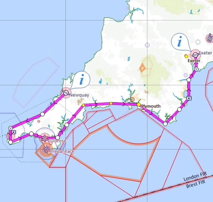 Flight 8 Map - RAF St Mawgan to Exeter Airport Map (16 April 2026, 4.20pm):
